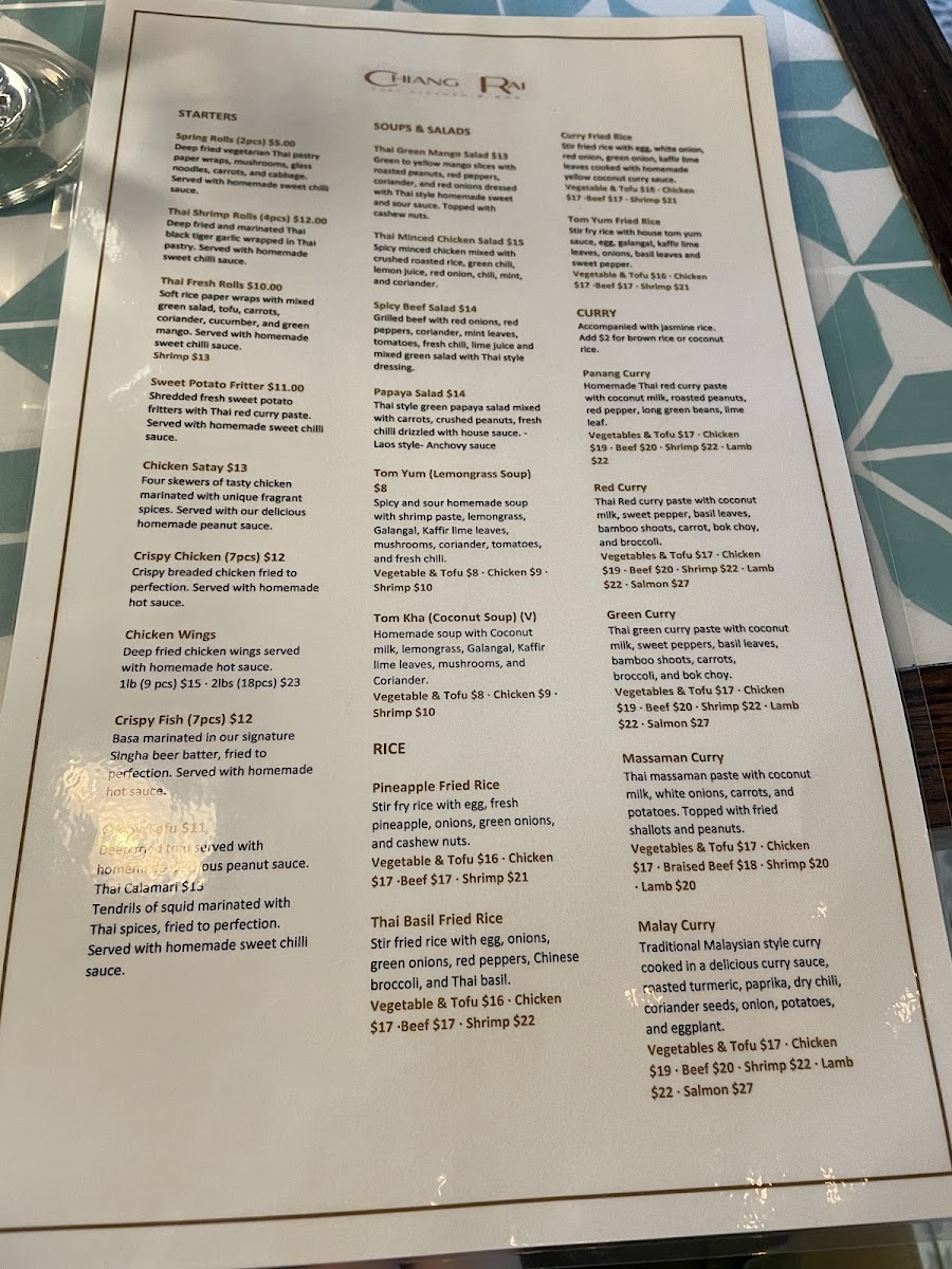 Chiang Rai Thai Kitchen (Northyork) Menu